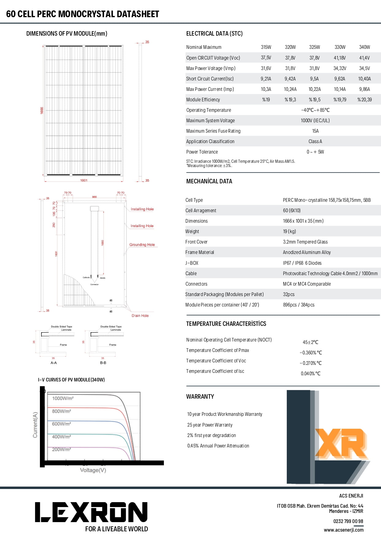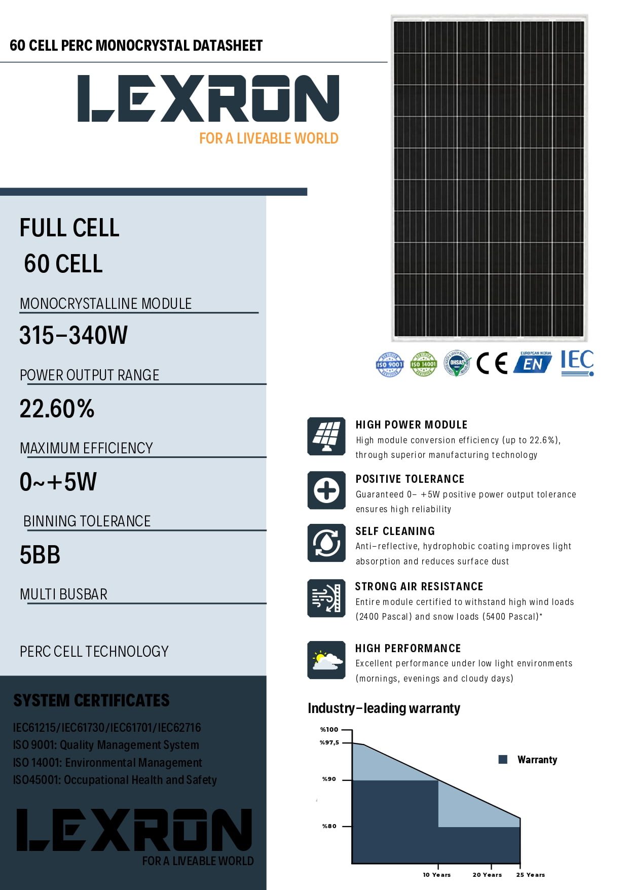 LEXRON 340W MONOKRİSTAL GÜNEŞ PANELİ